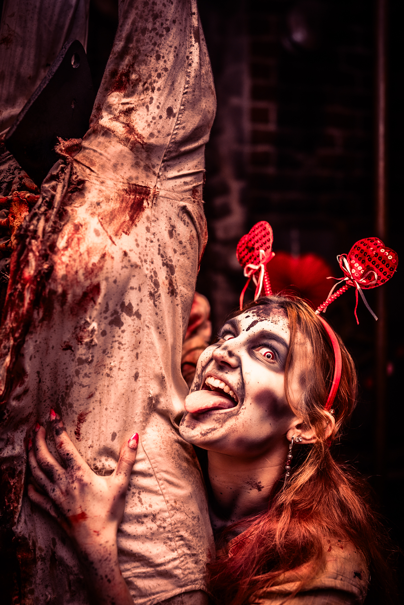 Always remember that scare actors are performing a demanding job, often for hours at a time. Be respectful of their space and ask for permission before photographing them, especially if you want to take a posed shot. Avoid using intrusive techniques like a direct flash that can disrupt their performance.
