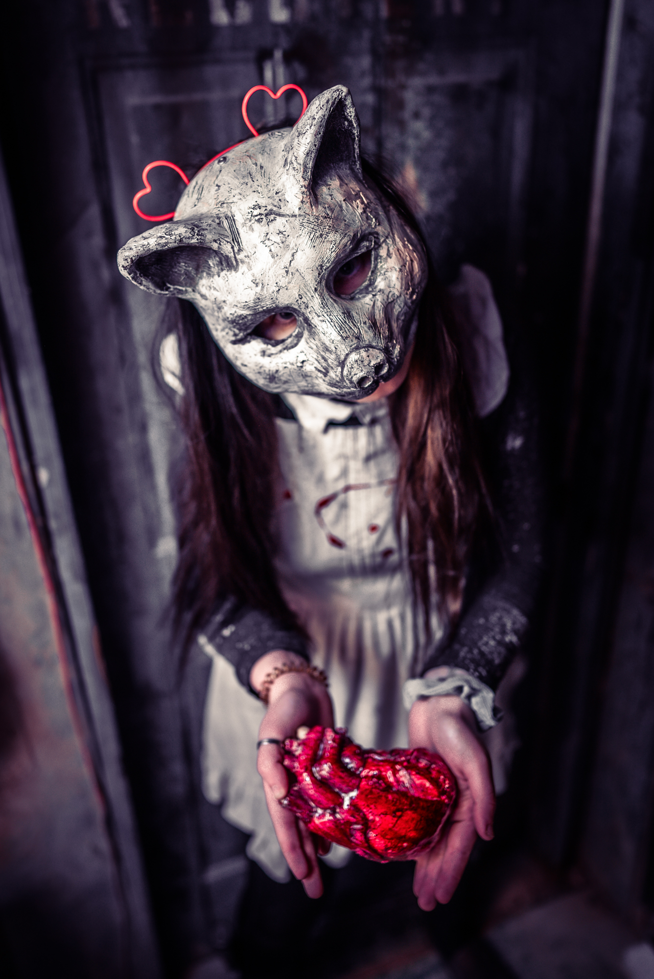 Adding a slight vignette can draw attention to the subject and increase the sense of isolation and fear. Play with color grading to enhance the eerie tones—cool blues, sickly greens, and deep reds work well in horror-themed photography.