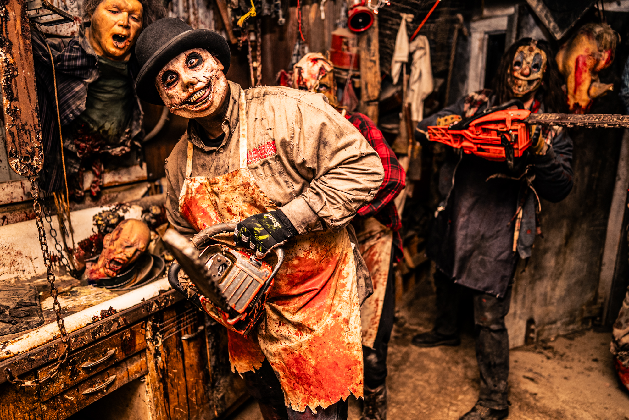 Den of Darkness: This haunted house plunges visitors into the depths of a decaying mansion filled with sinister secrets. The Den of Darkness is a labyrinth of narrow hallways, claustrophobic rooms, and pitch-black corridors where every turn brings a new terror. The haunted house is known for its highly detailed sets, which create a disturbingly realistic atmosphere that feels like a journey into madness.